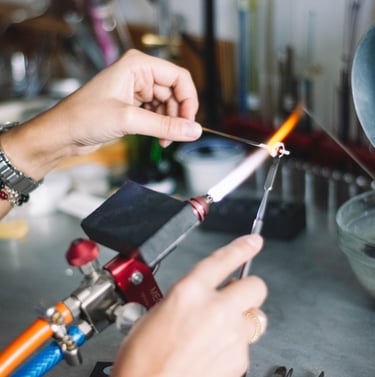 Using lampworking, glassblowing, and goldsmithing techniques, I bring my creations to life.