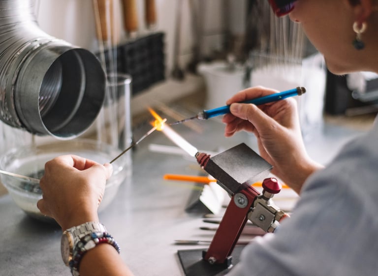 In my workshops you will discover the magic of lampwork: see how glass melts in the flame and transforms into jewelry.